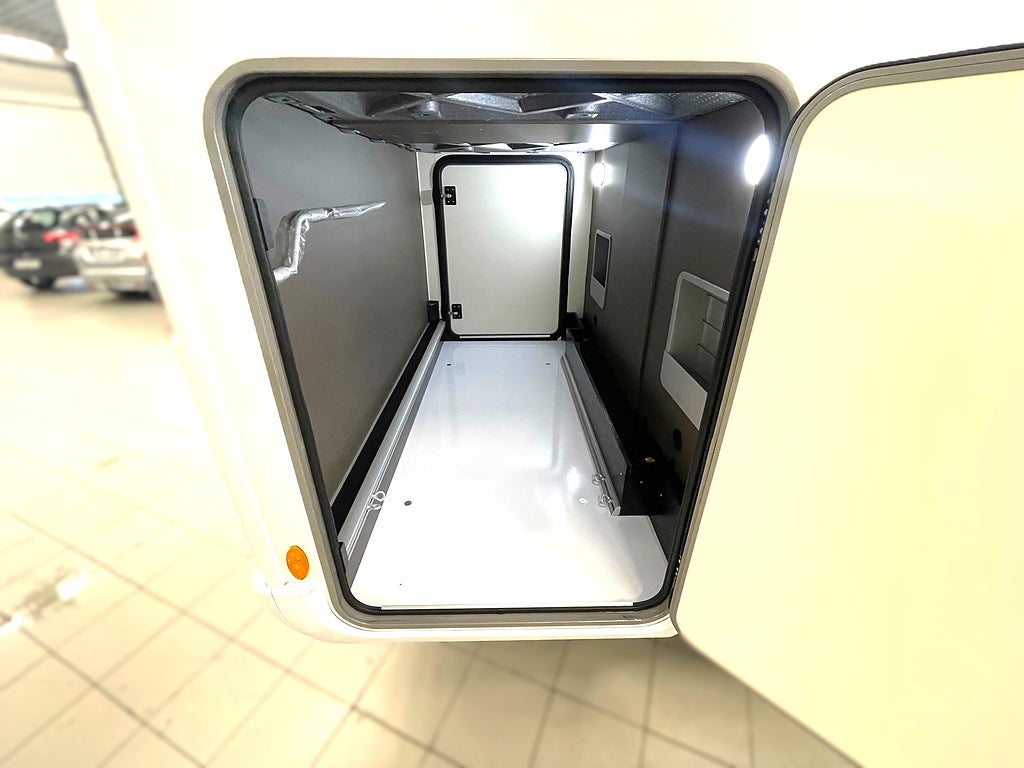 Thermo-Floor dubbelgolv: Plant golv genom hela bilen utan snubbelkanter. Ger dessutom extra isolering och smart förvaring – perfekt för både svala svenska sommarkvällar och tidiga höstturer.