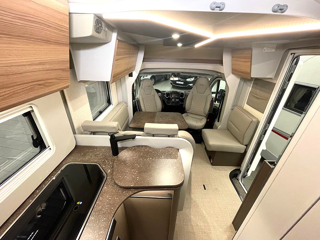 Bürstner är kända för sin unika interiördesign, och Lyseo-serien tar det till en helt ny nivå med sitt genomgående dubbelgolv (Thermo-Floor) och generösa rymd.